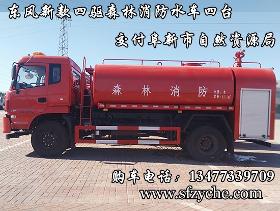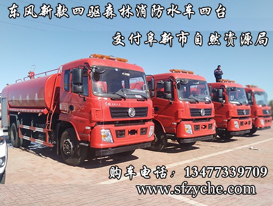 遼寧省阜新市自然資源局下屬的林業(yè)和草原局森林防火辦公室采購的東風(fēng)新款四驅(qū)森林消防水罐車具體參數(shù):東風(fēng)四驅(qū)越野森林消防水罐車_東風(fēng)11.1噸四驅(qū)消防水車_國五四驅(qū)越野森林滅火水車_東風(fēng)4×4越野SCS5183GPSEQ型四驅(qū)綠化噴灑車簡介:采用東風(fēng)EQ2180GD5DJ型越野汽車底盤,東風(fēng)153寬體駕駛室(選裝D913新款駕駛室),4×4驅(qū)動,康明斯ISB190 50國五發(fā)動機(jī),六檔變速箱,東風(fēng)商用車橋,前驅(qū)動橋3.8噸,后橋10噸,10.00R20輪胎,軸距4500mm,電動玻璃,方向助力,斷氣剎,ABS。罐體采用優(yōu)質(zhì)碳鋼Q235板材,板材厚度4mm,罐體容積11.1立方,安裝夾心取力器,后置泵箱,消防栓接口左右各一個,消防炮采用PS30-50D消防水炮,流量40L/S/1.0MPa 水射程:≥50m,消防泵采用常壓消防泵型號:CB10/40車用消防泵,流量:40L/s,壓力:1.0MPa,駕駛室頂部安裝長條警燈帶喊話器,全車顏色橘紅,兩側(cè)噴涂白色森林消防字樣。