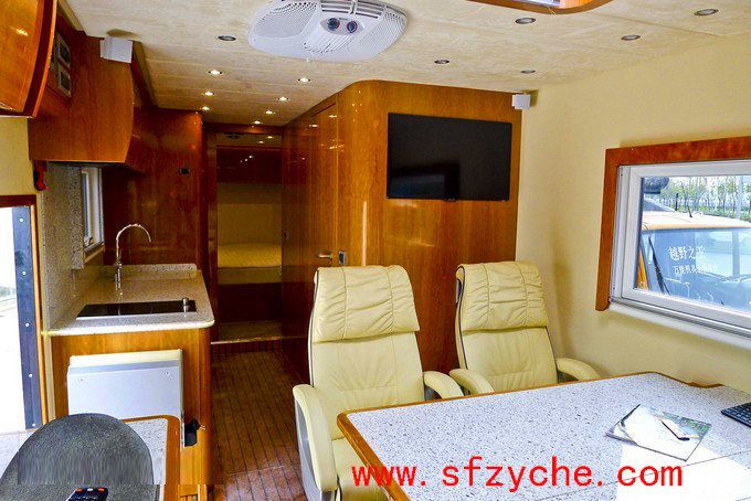 六驅(qū)越野房車車身內(nèi)整體豪華配置:在駕駛室中還有主流卡車中配備的天窗通風(fēng)系統(tǒng)和后排折疊床板,這款越野房車的后排內(nèi)部具有地板加熱系統(tǒng),獨(dú)立的會(huì)客廳,高級(jí)絨布真皮座椅具備多項(xiàng)可調(diào)功能,雖然包裹感不是很強(qiáng),但卻有一定的支撐性,更加符合越野房車的特質(zhì)。此外,中央空調(diào)、天窗與側(cè)窗外加頂部迎賓燈的點(diǎn)綴是恰到好處,前后對(duì)著的兩臺(tái)大尺寸液晶電視方面中央四位乘客觀看。在門口的兩側(cè),分別是吧臺(tái)和迷你廚房,電磁爐、微波爐、冰箱應(yīng)有盡有。車門頂部設(shè)有整車電路控制面板,可通過(guò)開關(guān)控制燈光、車門等等。干濕分離的衛(wèi)生間分別分布在客廳旁與臥室中,其中一間設(shè)有浴盆和真空馬桶,另一間則配有恒溫淋浴,走廊的盡頭就是這間臥室,其擁有電控臥室門,獨(dú)立中央空調(diào)、屋內(nèi)整體照明系統(tǒng)與液晶電視,此外整間臥室采用了實(shí)木裝潢,超寬的雙人床鋪?zhàn)銐蜍囍飨碛谩?/span>