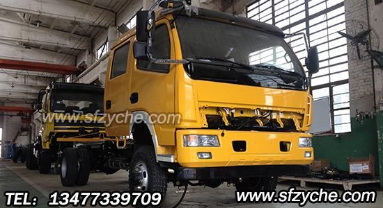 東風(fēng)多利卡四驅(qū)越野底盤馬上下線,可以上牌的四驅(qū)越野搶險車,東風(fēng)多利卡四驅(qū)越野輕卡底盤EQ1070NLJ,采用東風(fēng)多利卡雙排駕駛室,核定人數(shù)達到6人,康明斯140馬力正宗國四發(fā)動機ISB3.9-140E40A,東風(fēng)5擋變速箱,2.8噸前驅(qū)動橋,7.8噸級多利卡標準橋,8.25R16鋼絲胎,局部雙層大梁,軸距3800mm,適合各類越野改裝車的基本參數(shù)。圖片如下: