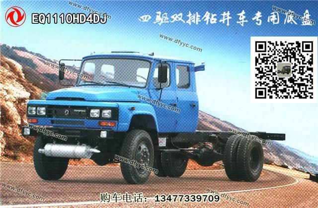 東風(fēng)尖頭四驅(qū)雙排越野鉆井車詳細(xì)配置:采用東風(fēng)EQ1110HD4DJ型原廠四驅(qū)越野底盤,尖頭雙排座駕駛室,玉柴160馬力正宗國(guó)四發(fā)動(dòng)機(jī),五檔變速箱,3.5噸前驅(qū)動(dòng)橋,后十噸東風(fēng)德納車橋,232mm(6+5)雙大粱,輪胎為9.00R20鋼絲胎。