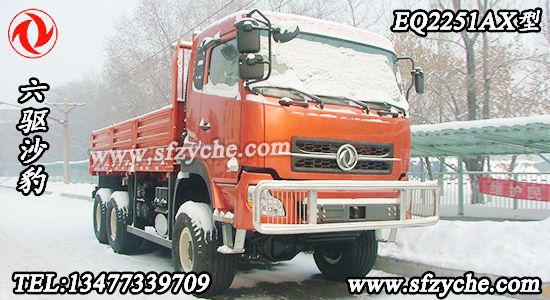 東風(fēng)牌EQ2251AX型沙漠越野車配置:采用東風(fēng)新款D310平頂單臥駕駛室,發(fā)動機:康明斯375馬力國四發(fā)動機 直列增壓中冷六缸水冷柴油機 ISLe375 40;北方奔馳同步器型9擋箱 9T-160 Φ430mm,膜片彈簧拉式離合器,7T前橋,10T 重慶大江雙級減速雙后橋 14.00-20輪胎 (選裝20-20 沙漠胎)軸距3800+1400 鋼板彈簧片數(shù)9/10,油箱350L,貨箱尺寸:5720×2294×800mm,整車外形尺寸:8470×2500,2700×3520,動力轉(zhuǎn)向。如需了解更多東風(fēng)六驅(qū)沙漠車圖片,東風(fēng)六驅(qū)沙漠車價格,東風(fēng)六驅(qū)沙漠車參數(shù),請立即撥打銷售熱線:13477339709 李經(jīng)理 0722-7053060 業(yè)務(wù)QQ:530233927,東風(fēng)越野卡車網(wǎng)址:www.yuntuokeji.com