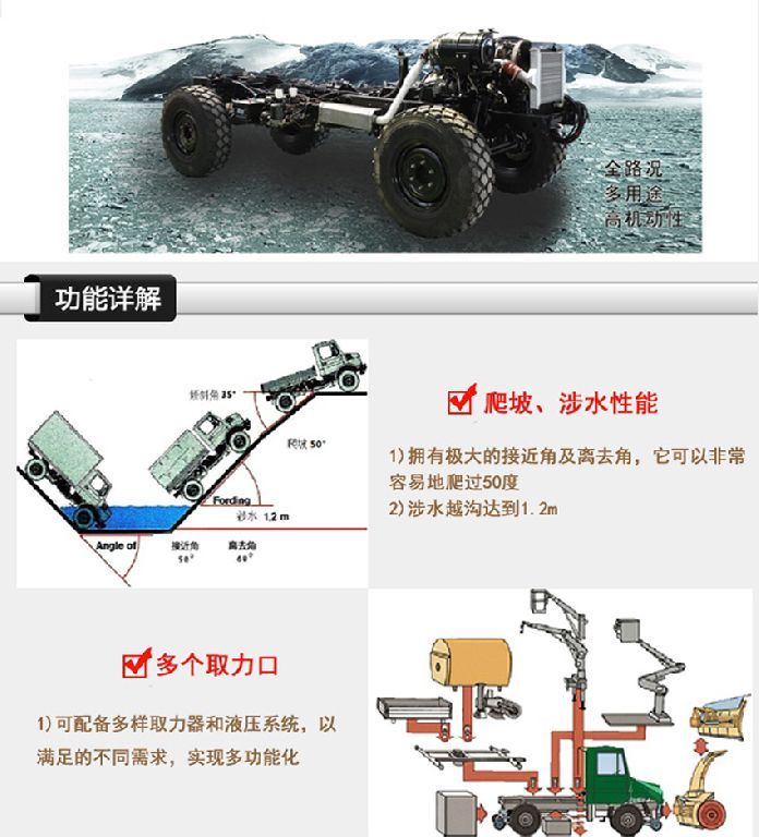 東風EQ2070FFZ4D型高性能越野特種車是一款技術(shù)先進、性能卓越、多功能、全天候的特種越野車,也是中國上唯一在沙漠、山區(qū)等極其艱苦環(huán)境條件下顯示高技術(shù)、高性能和高可靠性的軍用和特殊民用汽車。該產(chǎn)品,無論是越高山峻嶺、穿林海雪原,還是闖茫茫沙漠、涉沼澤泥潭,無論是用作防彈運兵、戰(zhàn)地救護,還是用作森林消防和野外勘探,它都能以超一流的越野通過能力、高涉水性,可靠耐久性和優(yōu)異的上裝適用能力,令世人嘆為觀止,當之無愧地成為挑戰(zhàn)越野極限的明星。如需了解更多EQ2070FZ4D型越野四驅(qū)汽車的詳細參數(shù)和配置請立即撥打銷售熱線:13477339709 李經(jīng)理 0722-7053060 業(yè)務(wù)QQ:530233927,微信號:13477339709 ,東風越野卡車網(wǎng)址:www.yuntuokeji.com