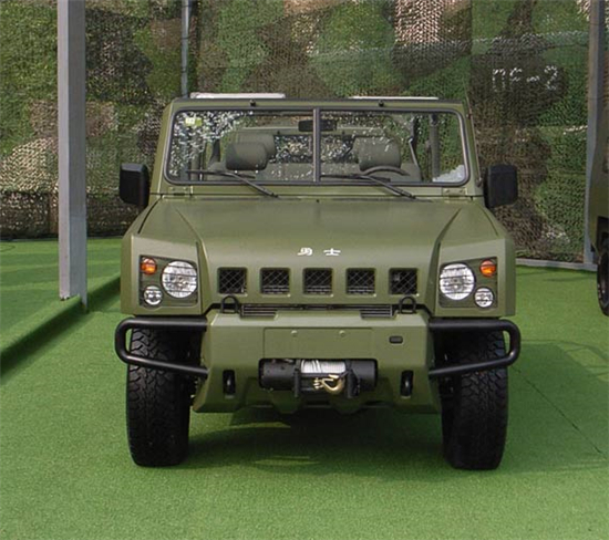 2007年8月2日,北汽控股公司在位于北京市順義區(qū)的北京汽車制造廠有限公司隆重舉行慶祝建軍80周年暨北京·勇士下線儀式。北汽勇士BJ2022型4×4軍用越野車自2007年列裝部隊(duì)以來,“勇士”越野車作為我軍第二代軍用指揮車,常年活躍在演訓(xùn)場上和邊防線上。2008年、2009年北汽勇士軍用車參加并圓滿完成汶川地震搶險(xiǎn),打擊暴恐勢力等多次重要軍事行動(dòng)。“勇士”是由北京汽車制造廠有限公司自主開發(fā)的,擁有完全自主知識產(chǎn)權(quán)的中國21世紀(jì)0.5噸/0.75噸級越野車!坝率俊蓖獠吭煨褪窃谘芯苛藲W、美、日三大流派越野車造型發(fā)展趨勢的基礎(chǔ)上,結(jié)合中國文化特色和中國越野車的特點(diǎn)而設(shè)計(jì)的,具有原創(chuàng)性。