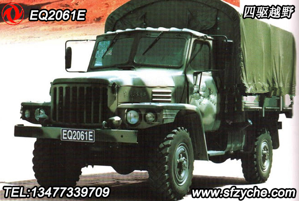 EQ2061E是東風(fēng)汽車公司在6×6型EQ2081E(EQ240)基礎(chǔ)上開發(fā)出的。采用相同的100kW直列六缸水冷汽油發(fā)動(dòng)機(jī)后,整車動(dòng)力性有較大改善,最高車速90km/h,0~60 km/h加速時(shí)間為25秒。