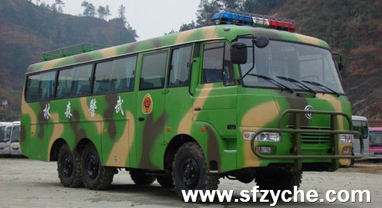 東風(fēng)六驅(qū)越野客車采用康明斯160馬力發(fā)動(dòng)機(jī),東風(fēng)5擋變速箱,整車長(zhǎng)8.4米,寬2.35米,高2930米,采用東風(fēng)EQ6840東風(fēng)特汽越野車專用底盤(pán),最多座位數(shù)30座,采用11R18大花紋越野輪胎,整車迷彩色,選裝空調(diào)暖風(fēng)系統(tǒng)。
