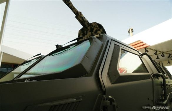 東風(fēng)四驅(qū)防雷反恐戰(zhàn)車全車具備防護(hù)7.62毫米口徑穿甲彈攻擊,正向具備防護(hù)12.7毫米口徑機(jī)槍彈攻擊(100米),而全車所有玻璃可以抵御7.62毫米口徑穿甲彈連續(xù)射擊3次擊穿。為了提升防護(hù)級(jí)別、密封效能和降低觀察死角,全車防彈玻璃突出車身焊接外側(cè)安裝。