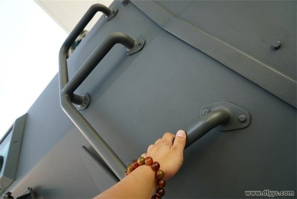 上圖是東風(fēng)四驅(qū)防雷反恐戰(zhàn)車右前車門外拉手特寫(xiě)。