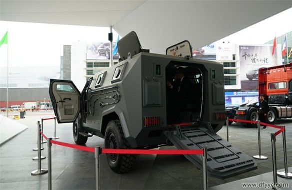 上圖是東風(fēng)10噸防雷反恐戰(zhàn)車全部艙門(頂蓋)開(kāi)啟后的特寫(xiě)。