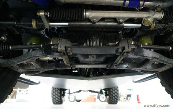 東風(fēng)四驅(qū)裝甲防雷反恐戰(zhàn)車的四驅(qū)系統(tǒng)全部國產(chǎn)化并非一步到位,經(jīng)過1代猛士基型車、標(biāo)準(zhǔn)2代猛士裝甲車、長軸距2代猛士裝甲車近10年的發(fā)展積累而來。而這種通過引進(jìn)技術(shù)、分布國產(chǎn)、吸收改進(jìn),到全部國產(chǎn)化并掌握知識(shí)產(chǎn)權(quán)的發(fā)展模式,已經(jīng)成為包括東風(fēng)特種汽車在內(nèi)多家軍裝企業(yè)的生產(chǎn)模式。在一個(gè)較高的起點(diǎn)上,用更短時(shí)間研發(fā)全新裝備,已經(jīng)脫離單純的購買、組裝的非可持續(xù)發(fā)展模式。 上圖是東風(fēng)四驅(qū)裝甲防雷反恐戰(zhàn)車底盤特寫。 東風(fēng)四驅(qū)裝甲防雷反恐戰(zhàn)車采用實(shí)時(shí)四驅(qū)系統(tǒng),包括前后差速器以及分動(dòng)器和控制系統(tǒng)全部國產(chǎn)化。帶有自動(dòng)調(diào)節(jié)輪胎壓力的系統(tǒng),具備5萬公里行駛無故障能力。為了提升東風(fēng)四驅(qū)裝甲防雷反恐戰(zhàn)車通過性,加裝了中央差速鎖。